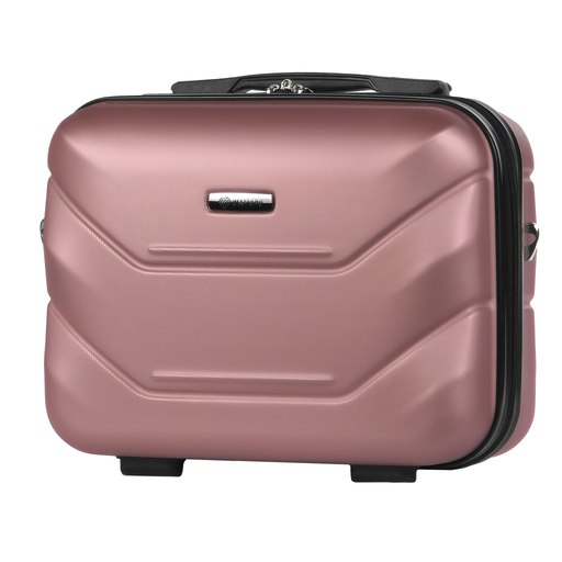 Kuferek podróżny różowe złoto marki DIAMOND z eleganckiej linii AMETHYST to doskonałe uzupełnienie naszej kolekcji, stanowiący praktyczny dodatek, który doskonale wpasuje się we wnętrze większej walizki. Zewnętrzna warstwa kuferka wykonana jest z wyjątkowo trwałego i odpornego na uszkodzenia materiału ABS Premium. To gwarantuje długotrwałą ochronę przed zarysowaniami i warunkami atmosferycznymi. Materiał ten jest również bardzo łatwy w czyszczeniu. Pas z tyłu kuferka pozwala na wygodne umieszczenie go na teleskopowej rączce walizki, co ułatwia transport. Regulowany odpinany pas na ramię, wyściełany miękką gumą, zapewnia komfortowe noszenie na ramieniu.