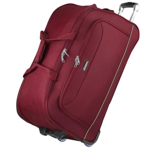 Komfort użytkowania zwiększają dwa duże kauczukowe kółka osadzone na metalowych łożyskach, które zapewniają płynne i ciche prowadzenie nawet przy pełnym obciążeniu. Usztywniane dno oraz solidne zabezpieczenia rogów torby wzmacniają konstrukcję i chronią ją przed uszkodzeniami mechanicznymi. Dwupoziomowy, teleskopowy uchwyt umożliwia wygodne manewrowanie torbą, a miękkie uchwyty spinane rzepem pozwalają komfortowo przenosić ją w ręku. Wnętrze torby zostało zaprojektowane w sposób funkcjonalny – wyposażono je w dwie praktyczne kieszonki wewnętrzne oraz elastyczne pasy spinające bagaż, stabilizujące zawartość podczas transportu. Model posiada również pojemną kieszeń zewnętrzną na podręczne przedmioty.